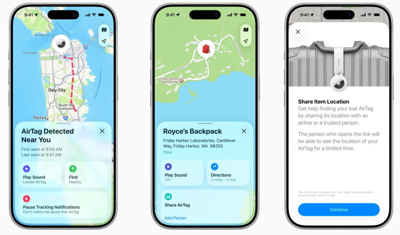 Apple подчеркнула, что AirTag «разработан исключительно для отслеживания объектов, а не людей или домашних животных». По словам компании, новый AirTag также получил улучшения конфиденциальности и безопасности и «включает в себя набор первых в отрасли средств защиты от нежелательного отслеживания, включая кроссплатформенные оповещения и уникальные идентификаторы Bluetooth, которые часто меняются».