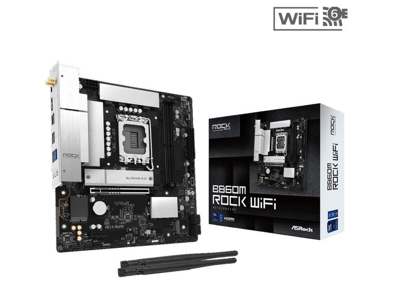 Модель B850M Rock WiFi представляет собой вариацию в формате Micro-ATX. Производитель заявляет для неё два слота DDR5 с поддержкой памяти DDR5-8200+ (через разгон), один PCIe 5.0 x16, два M.2 для NVMe-накопителей (один PCIe 5.0, другой — PCIe 4.0), а также поддержку Wi-Fi 6E.