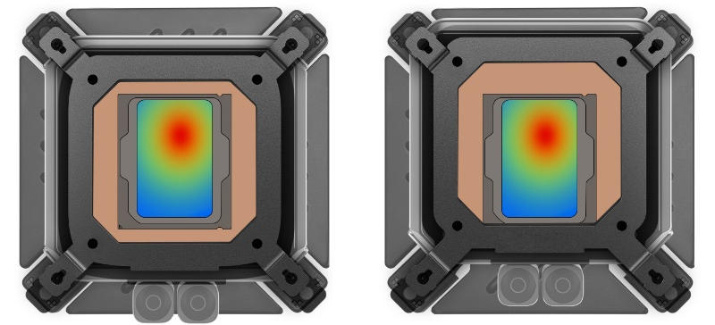 Для питания и управления помпой и экраном DeepCool Spartacus 360 хватает одного 10-контактного разъёма — СЖО проста в установке и не отягощает сборку провисающими проводами. Ещё одно достонство системы — смещённое крепление, которое повышает эффективность контакта с 20- и 24-ядерными процессорами Intel с разъёмом LGA1851: при смещении холодной пластины и точным выравниванием с основным тепловым пятном процессора температура ядер снижается на величину от 1 до 3 °C. DeepCool Spartacus 360 также может похвастаться системой фиксации с задней стороны — кулер в передней части можно установить без использования винтов, придав сборке аккуратный вид; на задней панели находятся пружинные гайки, которые не сместятся и не потеряются. Отмечается наличие технологии защиты от протечек.