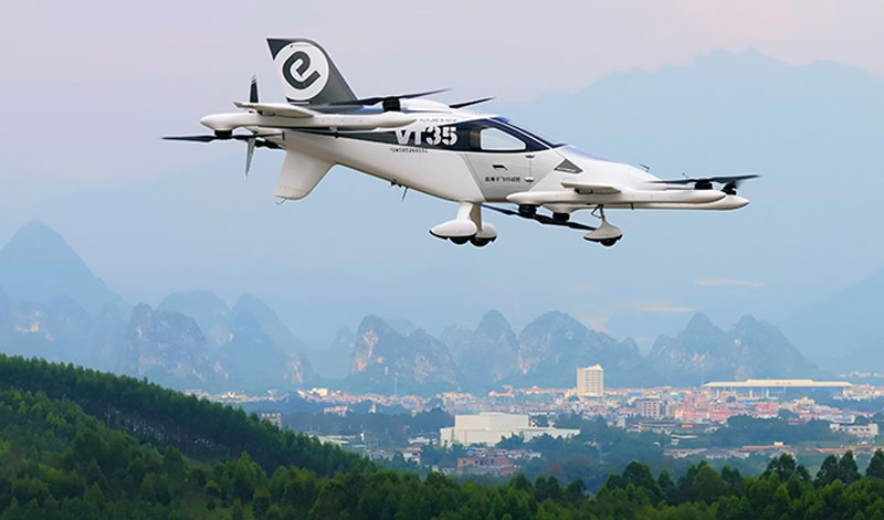 Китайская компания EHang — мировой лидер в производстве электрических аэротакси — представила двухместный «среднемагистральный» электролёт VT35. Дальность его полёта составит около 200 км, что обеспечивается самолётным профилем этой воздушной машины. Способность вертикально взлетать и садиться вместе с неплохой дальностью перелёта — это тот набор козырей, который обеспечит новой машине спрос в условиях города и не только.
