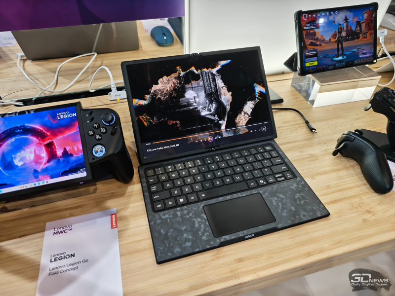 Китайская Lenovo является крупнейшим производителем ПК, а разного рода мероприятия использует для демонстрации своих наиболее смелых разработок. На MWC 2026 она показала концепт Legion Go Fold Concept, который представляет нечто среднее между игровым планшетом со складным дисплеем и трансформируемым ноутбуком.