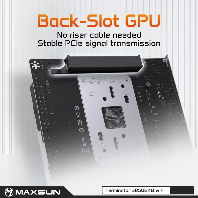 Компания MaxSun представила материнскую плату MS-Terminator B850 BKB WiFi формата Mini-ITX, предназначенную для процессоров AMD Ryzen 7000, 8000 и 9000. Особенность новинки заключается в том, что её разъём PCIe 5.0 x16 расположен на изнанке. Такой же особенностью обладает ранее выпущенная плата Terminator B760 BKB D5 WiFi для процессоров Intel.