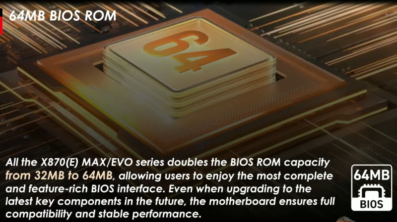 В рамках онлайн-стрима MSI объяснила, что предыдущие AM5-модели плат оснащены чипами BIOS ёмкостью 32 Мбайт, а новые модели Max и Evo получили микросхемы BIOS с вдвое увеличенным объёмом. Также новые платы оснащены специальным вспомогательным чипом OC Engine — внешним тактовым генератором, который позволяет платам устанавливать базовую частоту CPU независимо от частоты SoC процессора. MSI говорит, что сделано это для сохранения совместимости платформы AM5 с потенциальными будущими поколениями процессоров Ryzen без необходимости урезания некоторых функций из прошивок.