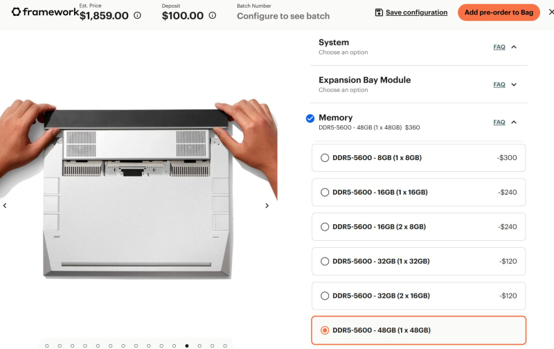 Производитель модульных ноутбуков Framework объявил о повышении цен на расширение памяти DDR5 на 50 %
