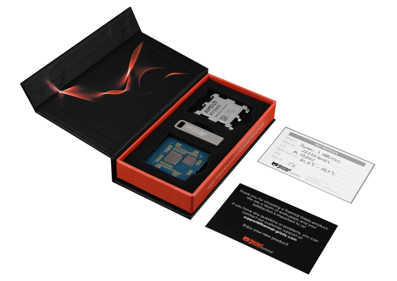 Каждый процессор Ryzen 7 9850X3D со снятой крышкой от Thermal Grizzly поставляется с протоколом тестирования, сохранённым в виде скриншота на прилагаемой USB-флешке, а также с изображением процессора без крышки под микроскопом. Компания также отмечает, что во время снятия крышки могут возникать незначительные косметические дефекты, а на кристаллах процессора могут оставаться следы от процесса проверки даже после очистки.