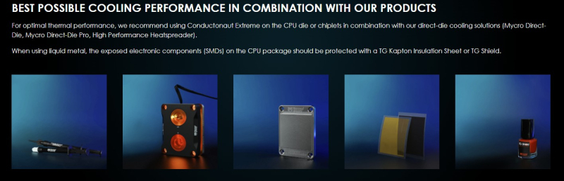 Подобные решения предназначены в первую очередь для энтузиастов, которые понимают, что они делают, и уже используют кастомные системы охлаждения, включая системы с прямым охлаждением кристаллов и кастомные водоблоки. Thermal Grizzly также рекомендует использовать свои продукты для охлаждения подобных процессоров, включая водоблоки для прямого контакта с кристаллами CPU, а в качестве термоинтерфейса использовать жидкий металл для достижения наилучших результатов.