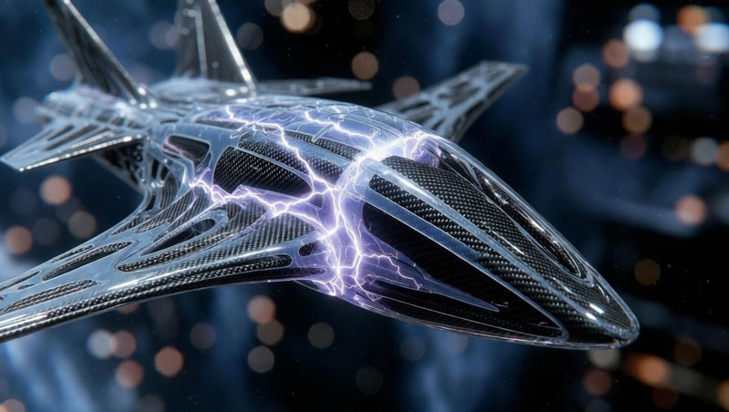 При появлении трещин через углеродные слои пропускают электрический ток — это ведёт к локальному разогреву материала. Термопластик плавится при температуре 150–200 °C, затекает в микротрещины и расслоения, а после охлаждения восстанавливает целостность за счёт переплетения полимерных цепей. Процесс полностью автоматизирован и происходит на месте без внешнего вмешательства.